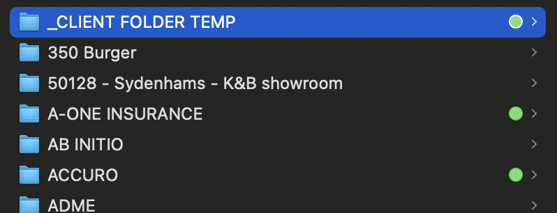 For example, we put an underscore in the “_CLIENT FOLDER TEMP” so it is always at the top of the list in the “_Clients” folder on the NAS.